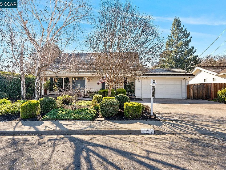 The home boasts refinished hardwood floors throughout, with newly added hardwood in the kitchen and dining areas. Fresh custom paint enhances the entire home. The updated kitchen features new stainless steel appliances and refreshed white cabinetry. The inviting step-down family room includes a gas fireplace with a view of the backyard. The functional layout offers two bedrooms and one bathroom on the main floor, with an additional two bedrooms and one bathroom upstairs. The private backyard is a serene retreat, featuring fresh landscaping, raised garden beds, and a charming chicken coop. Recent upgrades include a newer HVAC system, newer fencing, and a metal roof. Conveniently located on the border of Walnut Creek and Pleasant Hill, this home is close to shopping, dining, parks, and offers easy access to freeways, BART, public transportation, and the Canal Trail.