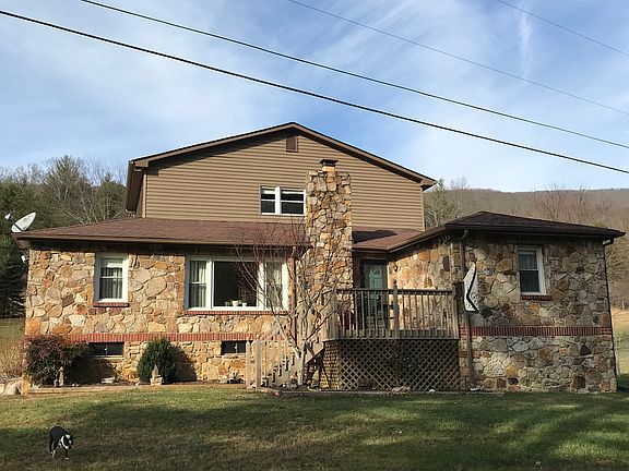 Beautiful mountain stone, mid-century, 4 bedroom, two bath ranch house with tasteul upper-story addition, main level laundry room, two skylights, insulated thermal windows, gas log fireplace and wood-burning fireplace, private master bedroom suite with walk-in closet and loft sitting area or home office, screened-in porch off the updated kitchen, front and rear decks, pull-down attic access, unfinished basement, 14x28 storage building/workshop, large garden spot, partially wooded 9+ acres at the base of East River Mountain, short drive to George Washington and Jefferson National Forests, fishing, biking, and skiing areas.