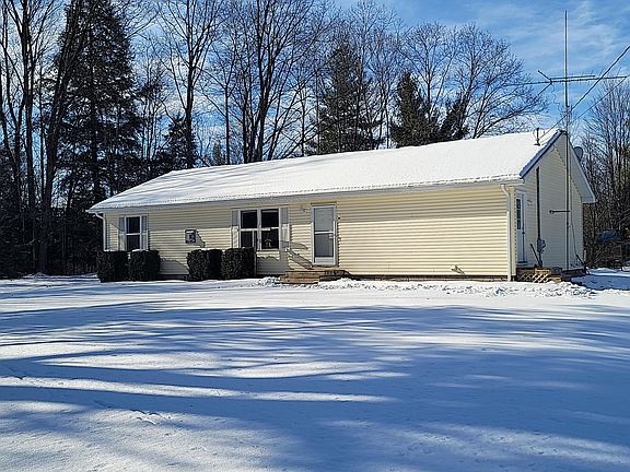 Home for sale in Kent City. 951 18 Mile Rd NW. Nice contemporary ranch on a quiet 4 acre wooded lot with Tyrone Township taxes. While the home has an 18 Mile Rd address, it sits about 1/4-mile back from the road on a private drive, so traffic noise, even during the winter months, is minimal. The main level has 2 bedroom and 2 fulls baths. This includes a Primary Bedroom Suite with private bath. The living room/dining room/kitchen are open concept and give off a spacious vibe that is enhanced by an abundance of natural light. The living room has a gas fireplace, and the dining room a wood-burning stove, as well as bay-door access to the rear deck and backyard. The partially finished full basement has 2 additional (legal egress) bedrooms and a ginormous rec room complete with a pool table. Outside, the 4 acre lot has a chicken coop and storage shed (both functional but in need of repair), as well as a fire pit. The sellers are personal co-representatives of the owner's estate and have never resided on the property. The property information provided was found in both public record and previous listing information.