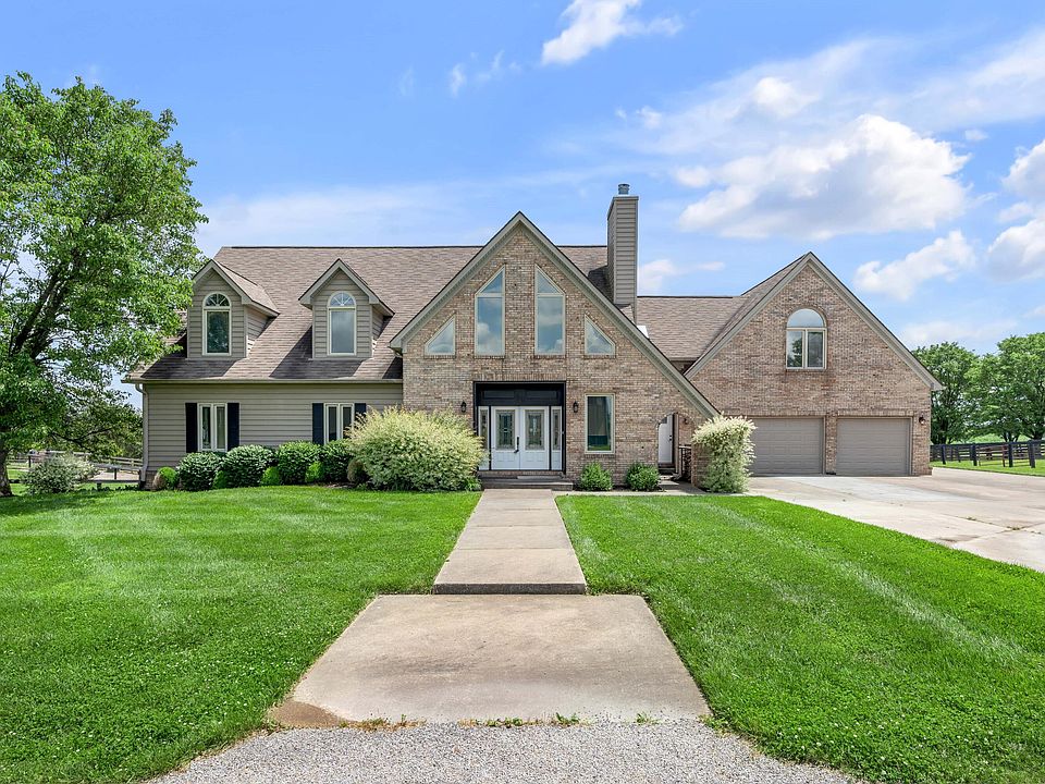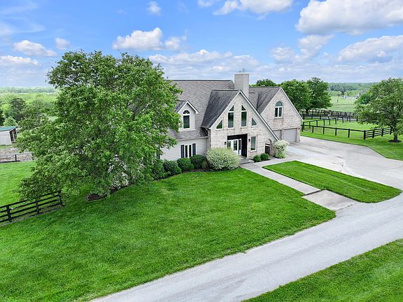 This is the ideal sport horse farm in move-in condition. The farm sports 26 stalls in 3 barns(1 barn with tack room and indoor wash stall has been recently completely redone), a 72' x 150' indoor arena, with all new footing, equipment barn, large workshop, barn apartment, 11 paddocks with automatic waterers, a tree-lined paved driveway, and plenty of parking for horse trailers and such. The wonderful 2-story home features a first and 2nd-floor owner's suite, 2 story great room, a gourmet kitchen, a second kitchen and living area in the walk-out basement (Could be a Mother-n-Laws suite), a wrap-around deck overlooking the pastures and your grazing horses. #-car attached garage. Only 11 miles to the Horse Park, 6 miles to Georgetown, and 16 miles to Lexington.