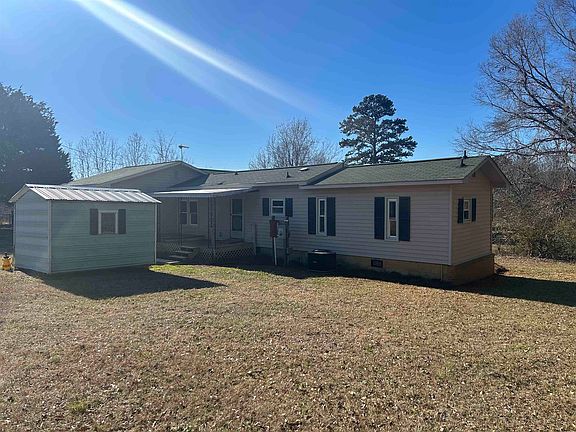 Cash Only! This property features a well-maintained 2-bedroom, 1.5-bath mobile home, complemented by a spacious 3rd room perfect for an office or game room. The exterior is a combination of brick and vinyl, providing both durability and aesthetic appeal. Situated on 2.02 acres, the property boasts a fenced yard, ensuring privacy and security Access to both a private well and a public water tap. Two outbuildings that are included with the sale, offering additional storage or workspace. Road frontage on both Glenn Springs Road and Lemonade Road, enhancing accessibility. Recent upgrades such as new flooring, a heat pump for efficient climate control, and some updated kitchen cabinets. Newer windows that contribute to energy efficiency. The seller intends to stain the back porch, adding to the property's charm. This mobile home presents a great opportunity for those seeking a comfortable living space with ample outdoor area. perfect for anyone looking to enjoy a peaceful lifestyle.