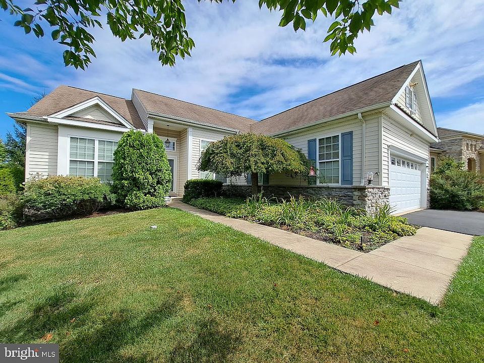 Fantastic one-floor living in this 2 Bedroom, 2 full bath single in Heritage Creek ( a 55+ community)! This corner lot, Washington model features vaulted ceilings, foyer entrance to grand living room and dining. The eat in Kitchen features a Breakfast Room and Family Room with sliders to deck overlooking the tranquil rear yard. Off of the kitchen are French doors that open up to a home office or guest suite. Main bedroom offers two large walk-in closets, bath with a Jacuzzi tub, stall shower and double sinks! Second bedroom boasts neutral dcor, natural light and comfort. The hall has a full bathroom and entry to laundry/mud room and access to 2 car attached garage with automatic garage door opener. The lower level is partially finished with a guest room, rec room, work shop and plenty of additional unfinished space to expand or keep as storage.
