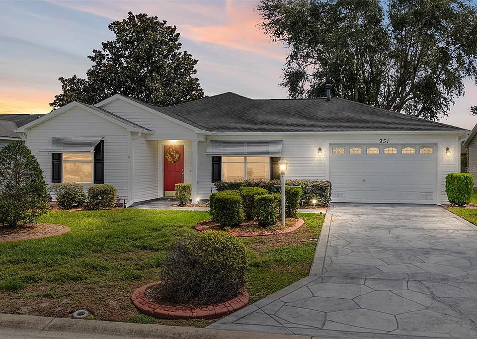 Furnished and no bond! Welcome to this beautifully maintained 2 BR, 2 bath home centrally located in the Village of Ashland. The home has engineered hardwood flooring in the living areas with ceramic tile in the kitchen and two bathrooms. The kitchen boasts white cabinets, updated refrigerator and dishwasher, and a window looking out onto the lanai. Additional features include high vaulted ceilings, roof replacement in 2022, and new hot water heater in 2023. The primary bedroom is large and has an ensuite bathroom, walk-in closet, and access to the glass-enclosed lanai that has a separate heater and AC unit making it perfect for all seasons. There is a patio off the lanai for outdoor space and a perfect spot for a grill. This home is move-in ready. The Village of Ashland is ideally located in the heart of The Villages near shopping, dining, recreation, town squares, and nearby golf courses to include three executive courses and Arnold Palmer Championship course.