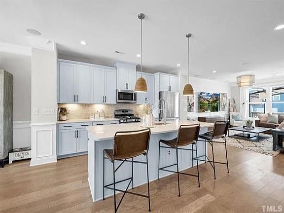 BACK ON THE MARKET AT NO FAULT OF THE SELLER!! One of a kind, like new, FULLY upgraded, stunning former model home 15 min to RTP and 5 min to Beaver Creek Commons! This 3-Story home gives you a spacious open floor plan that is no longer offered in the community at a BARGAIN price. The kitchen is equipped with all-new stainless steel appliances, quartz countertops and tasteful pendant lighting. Open to the kitchen is a grand family room with custom trim, wall to wall windows and easy access to a large outdoor deck. This home also boasts a main floor bedroom or office and 2 large primary suites with attached ensuites and spacious walk-in closets. Enjoy the summer months entertaining in style on your large outdoor deck or relaxing by the community outdoor pool. During the colder months, enjoy the community indoor pool, simulator, clubhouse and gym. Oversized 2-car garage with built in overhead storage, remote blinds and WHOLE house surround sound are just 3 of the added bonuses you get with this home! Seller just completed a remodel to add a 3rd bedroom, come see it before its gone!!