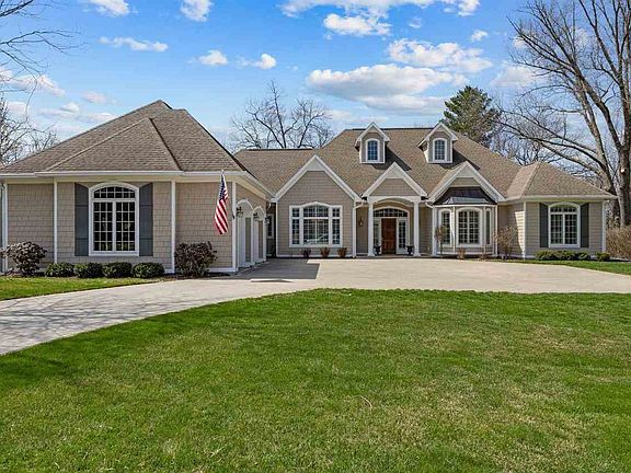Indulge in the epitome of opulence with this exquisite custom ranch home. This home has been meticulously crafted to perfection in every facet. From the moment you approach the residence, you're greeted by the grandeur of an exposed circular stamped concrete driveway, offset garage, arched windows with shutters setting the tone for the unparalleled luxury that awaits within. Step inside to discover a haven of spacious room sizes, offering an abundance of living areas designed for both entertaining and relaxation. The first-floor primary bedroom suite epitomizes elegance and comfort featuring expansive walk-in closet and a luxurious bath with fireplace. Prepare to host unforgettable gatherings in the dining room and outside gazebo, overlooking the beautiful terrace. Step into the heart of this home, where a generous kitchen awaits, adorned with custom cherry cabinetry, luxurious high-end appliances, 3 ovens, sleek quartz surfaces, painted moldings, trey ceilings, stunning wood floors, solid cherry doors and mendota gas fireplaces. Dramatic great room with 20' ceilings and andersen windows. Luxury continues in the lower level, which includes a family room adorned with a wet bar, 2 additional bedrooms and bath, Step into the private backyard oasis, where a lavish hot tub awaits amidst meticulously manicured landscaping.