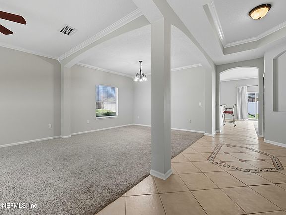 Open House: WED 10/8 & SUN 10/12 | 11-2p. Welcome to this spacious 4-bed, 2-bath home in the desirable Nature's Hammock section of Oakleaf Plantation. With over 2,400 sq ft, this property offers a 3-car garage, full stucco exterior, and crown molding throughout. Inside enjoy a large kitchen with island, hard-surface countertops, built-in closets in every room, a garden tub in the primary suite, and a versatile formal dining or flex space. Modern upgrades include smart light switches and a Ring doorbell with audio and video. The home also features knockdown ceilings and a vinyl-fenced backyard for privacy. The playground swingset in the backyard conveys with the house, while the only optional item is the water softener, which may be purchased separately (still under warranty) at an additional cost. Located near top schools, shopping, and dining, residents also enjoy access to Oakleaf Plantation's HOA amenities!