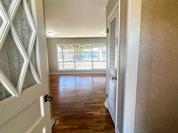 Excellent location!! This 3 bedroom, 2 1/2 bath ranch style home has so much to offer: 2 living areas, eat-in kitchen, formal dining room, large laundry room and a wood burning fireplace, an abundance of storage with a built-in gun cabinet in the hallway. The living room has an abundance of windows that give natural light that make the room warm and cozy. The backyard is partially fenced with a storage shed, a covered patio, storm shelter for inclement weather and the roof is about 2 years old.