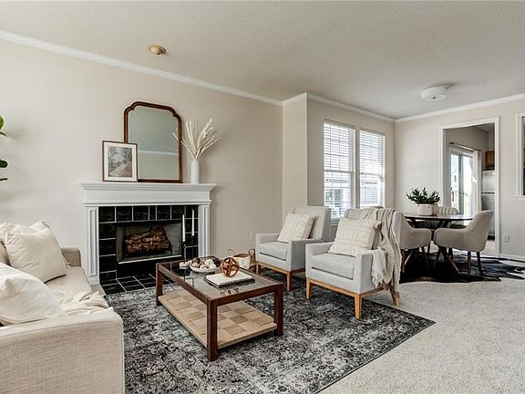 Easy living in a maintenance provided community! Enjoy quiet cul-de-sac living in this ranch with new carpet and paint. Move-in ready! Enter the living area with a fireplace that opens to an eat-in area and kitchen with loads of sunlight and patio doors to the deck. Main level living is even better with the convenient laundry location and the primary suite offers a large bedroom, ample vanity space, lots of closet space and step-in shower. The second bedroom is spacious with a large closet. Everything you need is comfortably situated on one level! The basement is expansive, do you need storage, a work bench or want to finish it for the additional living space? 2 Car garage is a real bonus in this neighborhood. HOA covers lawn care, exterior painting, snow removal and gutter cleaning. Award winning Olathe Schools and easy access to parks, area amenities and highway access. The HOA is $345/quarter. This unit is scheduled to be painted this summer.