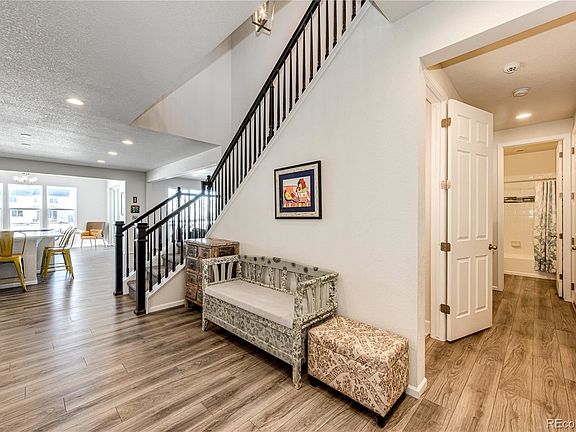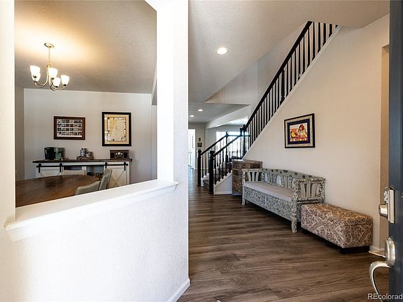 Looking for a fully loaded home with room to spread out This 2020 6-Bedroom 5-Bath Richmond American Seth model will delight you with gorgeous finishes and upgrades throughout! Starting with the stellar location with a pocket park right across the street. Imagine morning sun on your front porch and sunset over the mountains from your covered deck overlooking open space and trails. Step into the wide welcoming hallway and appreciate the open-concept dining room. Head into the upgraded gourmet kitchen featuring a fingerprint-resistant slate appliances including ample refrigerator, double oven, gas cooktop, convection microwave, and dishwasher. Note the beautiful quartz counter tops, walk-in-pantry and massive center island and open flow into the sunny dining nook and expansive great room boasting center-close sliding doors and surround sound pre-wiring. Additionally, a main floor bedroom and full bath add to the appeal. Upstairs the expansive loft is waiting for you to relax and enjoy. The lavish owner's suite will delight you with mountain views and a luxury attached bath with dual vanities, a tile surround walk-in shower featuring euroglass door, a linen closet and two walk-in closets! Two of the generous upstairs secondary bedrooms share a full hall bath and the 3rd is even an ensuite with a full bath and walk in closet! The laundry room provides cabinets and a 2nd linen closet. For entertaining space, hobbies or even a separate living space, the bright walk-out basement provides a large versatile great room with plumbing rough-ins for a wet bar or kitchenette. There is also a good-sized bedroom and 3/4 bathroom as well as great storage space. Completely drywalled 3-car garage with overheight 8' doors. Solar means affordable energy and the dual furnace and A/C give maximum comfort and efficiency. The fenced easy-to-maintain back yard with covered deck and patio gives you privacy, year round enjoyment and beautiful views. Just move in and enjoy! Welcome home.