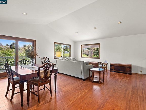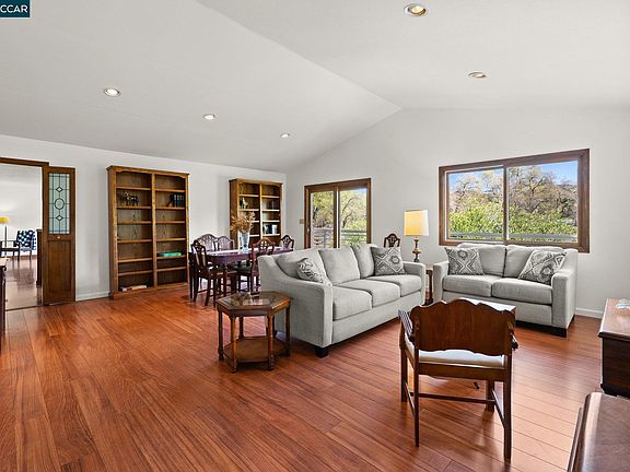 Rare Opportunity for Horses, a Garden Oasis or both! .92 acre in downtown Clayton. Custom single family home on a private street with no through access. Main living area (4 beds/2 baths, plus all additional rooms) is located on the second level above the two car garage. Wrap around wooden deck provides wonderful views. Enter into the formal living with high vaulted ceilings, formal dining room and windows to view the beautiful outdoors. Huge open kitchen has space for everything a chef would need. Island with a breakfast bar, large eating area, 2 pantry's, sliding doors and more windows. Family room with wood burning fireplace, raised hearth and mantel. 4 full bedrooms and 2 full baths. Extra storage. Freshly painted-Neutral color. Hardwood, carpet and vinyl floors, dual pane windows, alarm system, newer HVAC, whole house fan, custom high quality Oak woodworking details throughout. Separate/private In-Law unit is below the main level. 1/1 with a full kitchen and family room. Separate entrance, slider, balcony and parking. Possible rental income. There is a 2 stall barn, several outbuilding and an arena. Well water available for irrigation. Detached 2 car garage. Amazing amount of storage available under the house (wine cellar). Energy efficient with leased "Sun" Solar system!