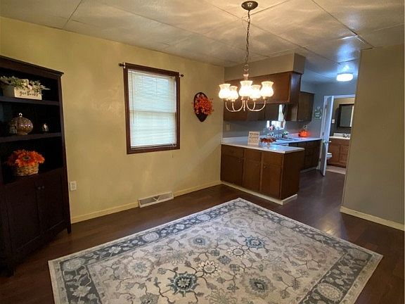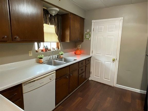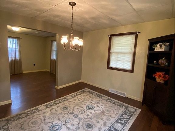 Charming home - larger than it looks. 3 bedrooms with 2 full baths. Nicely updated kitchen has dishwasher & double sinks with plenty of cupboards & countertop area for all of the holiday baking. Updated full bath off kitchen with another full bath in lower level. 3rd bedroom has door leading to the back deck for private entry. Lots of storage space. Parking in front of home and in driveway beside the home. Covered front porch & nice size back deck. Large lot with storage shed & firepit in the backyard extends to the other side of creek behind the house - perfect for outdoor entertaining & sled riding this winter.