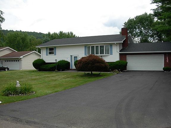 Beautiful 4 bdrm 2 bath split foyer located in Pine City NY - Home has been freshly painted, new hardwood flooring put in the entry ways as well as the dining room. Large open kitchen with sliding glass doors that lead to an upper balcony with a beautiful view. Home borders Chapel Park. Large back yard, long private drive that has a 2 bay detached garage. Home has an attached heated garage as well. Central air, garbage disposable, fireplace, enclosed lower porch, above ground pool, privacy fence. Must see!!