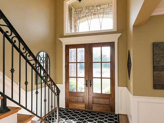 Fabulous 5 BR, 4.5 Bath NEWER HOME built in 2017 and located on the 3rd fairway of the Persimmon Ridge Golf Course! This home features 10' ceilings on the main level, 3.25'' wide sand and finish white oak hardwood floors on 1st floor entertainment areas, including the master bedroom, open floor plan and covered rear porch! 8' wood and glass entry opens to a vaulted foyer featuring hardwood floors, staircase with handcrafted iron balustrade with site lines through the great room, open gourmet kitchen and into the rear family room with stone fireplace. Hardwood floors continue through a formal columned dining room with floor to ceiling windows and an open Great Room with wall of rear windows overlooking the covered rear porch and treed golf course views. The Great Room opens directly to the gourmet style kitchen with antiqued white cabinetry with upper glass accent cabinets, upgraded stainless steel appliance package including a 6-burner gas cooktop, granite countertops, center island with hammered copper sink, hardwood floors all open to the rear family room with a set of butler's cabinets, wall of windows, stone fireplace flanked with windows and doors to the rear covered porch!Hardwood floors continue into a 1st floor king size Owners Suite featuring rear windows and views and a spa inspired bath with his and her vanities with granite tops, custom cabinet partition, travertine tiled floors, jetted tub, tiled to the ceiling shower and walk-in closet!A rear hall leads a large 1st floor laundry room with travertine floors, Powder Room and walk-in Pantry!The front staircase leads to 3 large bedrooms and 2 full baths!Two of the bedrooms offer 2 sets of closets and a jack-n-jill bath with private vanities!One of the bedrooms offers taller ceilings and access to a full bath!The lower level features tall ceilings and tons of daylight windows!!It offers a shiplap stained accent wall, a walk behind wet bar with wood accent shelving, Open recreation room to a family room with