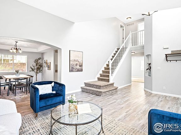 Stylish updates surface throughout this exquisitely remodeled Metzler Ranch home. Positioned south-facing, the interior is bathed in brilliant natural light from vast windows. LVP flooring flows gracefully throughout the main level, complemented by a soothing, neutral color palette. A formal living room effortlessly extends into an elegant dining room. The kitchen showcases granite countertops, stainless steel appliances and a center island. Sliding glass doors in a bright breakfast nook open to a large deck in a private, fenced-in backyard. Enjoy cozy evenings spent relaxing around a tiled fireplace in a spacious living area. A main-level office offers a dedicated home workspace. The expansive primary suite boasts a walk-in closet and a remodeled 5-piece bath. Two additional upper-level bedrooms share a dual-entry bath with granite countertops. Situated close to dining, outlet shops and Castle Rock's historic downtown, this home offers easy access to both Denver and Colorado Springs.