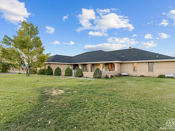 Set on 3.24 picturesque acres, this stunning ranch-style home combines timeless brick charm with modern amenities. With thoughtful design evident from the inviting front courtyard to the expansive views from the oversized deck, this property has been meticulously maintained and is ready for its next chapter. Updated in 2018, the kitchen boasts double ovens, quartz countertops, and a spacious walk-in butler's pantry. Adjacent is a formal dining room with elegant built-in china cabinets. This oversized garage includes built-in cabinetry and a dedicated workbench area, plus access to a versatile hobby room complete with cabinetry and a sink. The main living room features vaulted ceilings, exposed beams, and large windows that frame breathtaking views of Mt. Dutton and Panguitch. A pellet stove ensures cozy warmth during winter months, providing efficient, soot-free heating. The oversized primary bedroom offers two separate bathrooms and dual walk-in closets for ultimate convenience. Flooded with natural light, the lower level includes a second full kitchen, a library with built-in shelving, a sewing room, three additional bedrooms, a bathroom, and three spacious storage rooms. Enjoy the outdoors from the fully covered patio that opens to lush green grass, all while savoring incredible views.