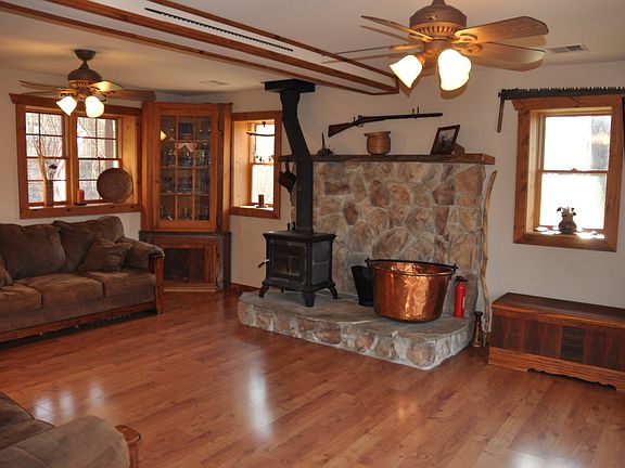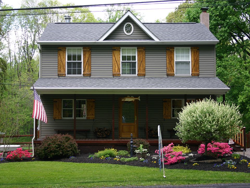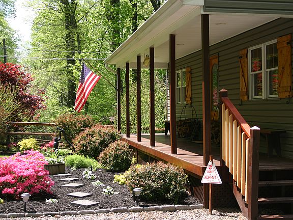 JUST REDUCED!! Resting on 2.27 acres is this custom built stunning 3 bed. / 2 bath colonial where rustic charm meets modern convenience. Newly remodeled in 2011 with a full upper level and numerous upgrades to both the interior and exterior. Marvel at the beauty of the large wood porch with hand crafted wooden shutters then step inside to the spacious family room with a huge stone fireplace & wood mantle and a wood burning soap stone stove with sliders to the expansive wood deck with iron spindles and a gorgeous view of the private rear yard and landscape. The modern kitchen is equipped with a newer dishwasher, Kenmore appliances, corian countertops, tile backsplash, and ceramic tile flooring. The bright upper level features a large master with an abundance of windows, another generously sized bedroom, and a shared bathroom with a corian countertop vanity, double stall shower, and cork flooring. The lower level/ basement includes a family room, a sizable bedroom with egress to the rear, a deep closet for storage, a full bathroom with stall shower and a laundry room. The private rear yard has a wood deck with stairs to a beautiful stamped concrete patio – perfect for entertaining. Also located on the 2.27 acres is the over-sized custom built shed that can be used for storing yard equipment and seasonal items. Well-built custom house with lots of details both inside & out! Insulated well – energy efficient with low energy bills! Newer water heater & whole house generator! Unique opportunity. Off the beat and path but close proximity to major routes and shopping.This is not a drive by – schedule a tour today!