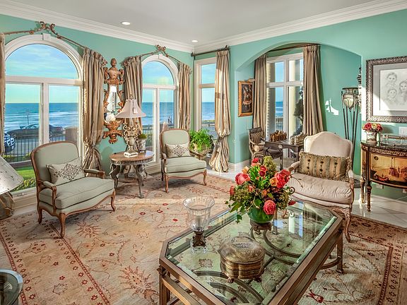 Situated across from the ocean, this exquisite estate features panoramic views of the coastline from almost every room. This fully-gated compound offers a 5 bedroom main home w/ elevator, solar-heated pool & spa, sport court, detached 1 bed/1 bath guest house w/ sun room & art studio & enormous 3+ car garage. Relax & unwind as you watch the sunset or host friends & family in the entertainer''s dream backyard. Live the ultimate Southern California lifestyle! Designed with no expense spared, this custom home, which is surrounded by beautifully manicured lawns & landscape, truly takes advantage of the stellar location & gorgeous views. Upon entry, an elegant foyer leads to the formal living & dining room. The kitchen opens to a breakfast nook & flows into the family room which features a coffered ceiling & fireplace. One of the 5 bedrooms of the main home is situated on the 1st level; the other 4 bedrooms are located upstairs. The master retreat offers an ocean-facing balcony; perfect for watching the waves break while sipping your morning coffee. The backyard, which offers patio space w/ built-in BBQ, gorgeous pool & spa w/ water features, sport court, & grassy lawn, leads to the detached guest home & garage. This estate offers it all & more. Minutes from San Diego''s best eateries, shops, parks & attractions, this idyllic location can''t be beat! Opportunity awaits!
