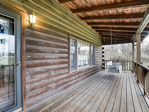 Wonderful 3 Bedroom, 2 Bath Northeastern Log Home on 10.7 Acres. Welcoming covered porch, screened back porch. D-Logs Full Base. has wall heater. Great 4 car det garage. Grt room w/ gas fireplace and vaulted ceiling. Breakfast ar. Skylights. 6 panel wood doors, Propane furn, cent air, roof: 2014 (8 acres can be rented by neighboring farmer if wanted). Buyers may have inspections at their expense. Home is being sold to settle an estate. As-is, Seller doesn't want to make repairs if any needed.