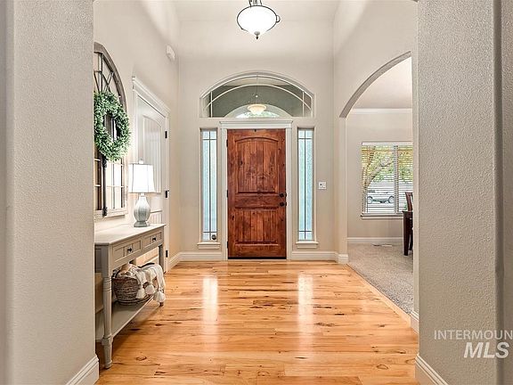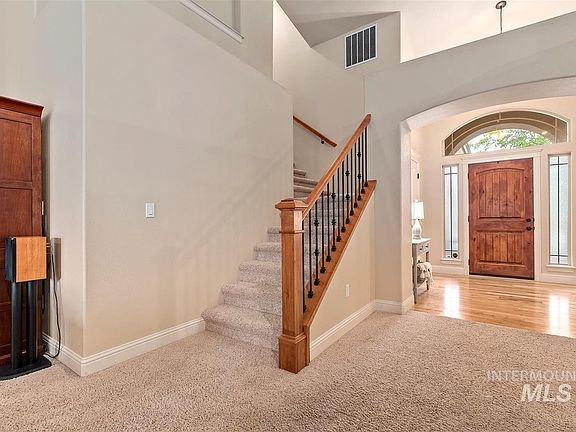 Situated on a cul-de-sac in Northwest Meridian, this beautiful 3223 sq. ft Traditional offers the perfect floor-plan with 4 bedrooms, 3.5 baths and is nestled on a sprawling ¼ acre lot! On the first level, you will find three bedrooms including the primary suite which opens to the backyard, has a fireplace, a large walk-in-closet, separate tub and shower and dual sinks. The living room boasts high, vaulted ceilings, a fireplace and shares an open concept living space with the kitchen, breakfast area and formal dining room. The other two bedrooms, Jack and Jill style bathroom and office are located away from the primary suite for extra privacy. On the upper level you will find a huge bonus room with a kitchenette and the perfect guest quarters, tucked away on its own with an additional bedroom and full bathroom. The sprawling, private backyard has beautifully matured trees, raised garden beds and lots of room to play. The property has lots of storage, a 3-car garage and laundry room w/utility sink.