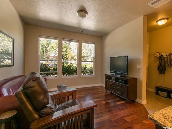 Welcome to this open and spacious town home with vaulted ceilings located in a private setting next to the park/playground near the pool. Enjoy granite counter tops, stainless appliances and lots of cabinets in the kitchen. Utilities bills will be low, and no noise from the neighbors due to extra insulation. Convenient access to legacy trail, freeway, hiking and station park. No Wednesday Showings.