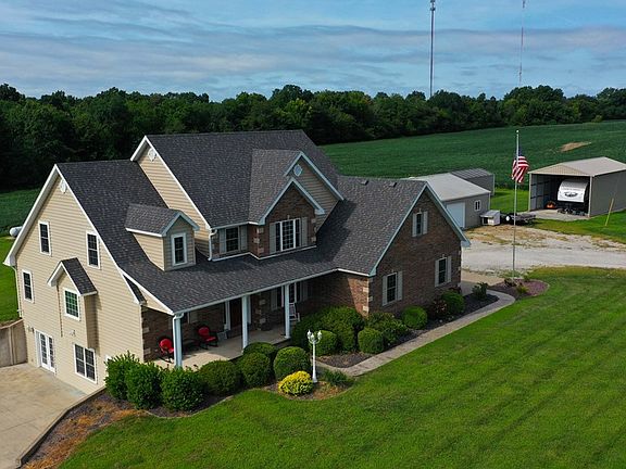 Gorgeous Estate 5 bedroom, 6 bath 2 story home! Over 4,000 sq ft of living space. Secluded on a beautiful 20 M/L acre setting with income! Attached 2 car garage as well as a detached 30x40 2 car garage with storage and camper plug ins, also an additional building with 14Ft door opening. Spacious walk out basement patio and patio covered porch with vaulted knotty pine ceiling, firepit and equipped/plumbed for outdoor kitchen and wired for a hot tub! What a view from your back yard. You will see an abundant of wildlife! All the spacious bedrooms have walk-in closets and their own bathroom! Two of the Bedrooms share a Jack and Jill bathroom. Laundry hookup is located on the second and main level, convenient to all the bedrooms, second level family room area and has its own HVAC system.