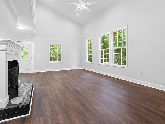 Front porchAbundant natural lightVaulted ceilingsNew luxury flooringFenced backyardMature treesLarge nearly flat lot