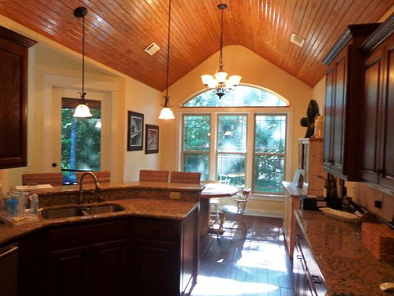 Lots of charm & character w/ this French Country gorgeous home. Spectacular vaulted tongue & groove ceilings in kitchen & screened-in porch. Gorgeous wide planked hardwood floors, plantation shutters, cased0out windows. Lg MBR & MBA w/ unique dbl vanity sink, walk-in tile & shower & lg master closet, private deck & patio. A Must See!