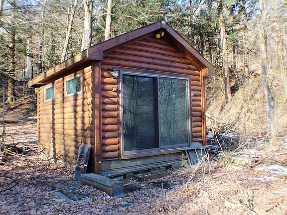 If you want privacy on the river with great trout fishing out the front door, look no further. Six total acres with over 400 feet of river frontage. Over 1800 feet of shared river access on one of the best trout riffles in the East!This small, but well built ''camping cabin'' has electric and woodstove. Cabin is very comfortable and can be a nice guest cottage once you build your getaway home on a building site with great views. Really nice deer and turkey hunting is a bonus.