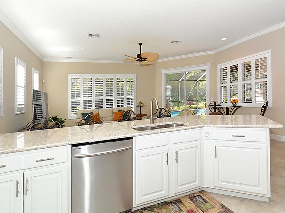 BETTER THAN NEW CONSTRUCTION, this pristine pool home has been lovingly upgraded for you with highest quality designs. The sellers' attention to detail is clear in the architectural details and fine finishes throughout. Inviting living room w/custom built-ins, cozy gas fireplace, wine bar & granite ('13) flows into the pavered lanai. Kitchen & family rooms are perfect for entertaining. Remodeled kitchen (2016) has state-of-the-art stainless appliances: gas stove, 2 ovens, beautiful quartz countertops & wood cabinets. Pristine tile flooring throughout living areas, master suite & den ('16). Master bath has jetted tub and recently remodeled with new shower, cabinets & granite ('15), the master walk in closets have been customized for your convenience. Plantation shutters, water heater ('15), crown molding, security system & more. French doors lead to the 4th bedroom which doubles as a den with a beautiful golf course view. You'll love the golf cart garage! Relax by your pool ('13) in the enclosed lanai with updated spacious outdoor kitchen with granite countertops and TV. Boating enthusiast will appreciate the marina slips located on the Manatee River. Waterlefe's outstanding amenities include Golf Club House, River Club & restaurant, Olympic size pool & Tiki Bar. Fitness center, locker rooms, dining with beautiful sunsets overlooking the Manatee River, and social events. Three resident entrances and exits for your convenience & privacy. Come experience the Waterlefe Club Lifestyle...