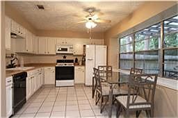GREAT home/GOOD location/SUPER updates/ EXCELLENT price! Tiled entry leads to spacious open den w/real hardwoods/fireplace/vaulted ceiling & deco paint! Awesome kitchen w/white cabinets/tile flooring adjoining dining w/triple window & view of backyard! Large master w/dressing area/deco paint/tile in bath/walk-in closet! 4th bedroom could be study or gameroom w/tile floor! Incredible covered back porch/wood deck/vinyl siding/Morgan storage shed/solar screens/Automatic security lights & more! WOW