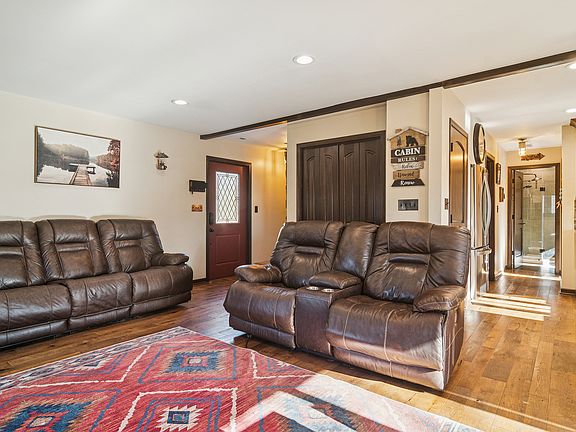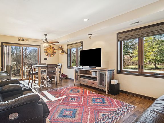 Stunning Custom Rebuild on Over an Acre - High-End Finishes Throughout This exceptional home at 9510 Martin Drive was completely rebuilt from the studs up in 2021, offering the quality, efficiency, and peace of mind of new construction without the wait. Studs on framing are every 12 inches instead of standard 16 making it more structurally sound. Nearly every component of the home was replaced or upgraded, with over $230,000 invested in top-tier materials, craftsmanship, and modern systems. Inside, you'll find high-end Mouser cabinetry, quartz countertops, hardwood floors in the main living areas, plush premium carpeting in the bedrooms, custom-designed closet organization systems by Closets by Design, custom lighting, and spa-like bathrooms featuring custom vanities, soaking tub, and frameless shower glass. Custom Bali window treatments with blackout curtains on all windows and patio doors. The home features all-new electrical, plumbing, HVAC, ductwork, spray foam insulation, tankless water heater, water softener, and a reverse osmosis drinking water purification system, along with a Lennox furnace and air conditioning system with Ecobee thermostat. Natural light fills the home through premium casement windows and patio doors, while the kitchen is fully equipped with LG appliances. The living room fireplace is fully roughed in for electric, gas, and venting, and an upstairs bedroom opens to a Trex deck. Set on over an acre, the property offers privacy and room to grow. Significant tree clearing and property preparation has already been completed, providing a solid starting point for future landscaping and outdoor enhancements. All major systems are built for expansion, making it easy to add a garage, additional rooms, or a four-season space. Septic cleaned and inspected (2025), well inspected, and meticulous maintenance throughout. Manuals and receipts available. This is a rare opportunity to own a nearly brand-new, thoughtfully rebuilt home with luxury finishes, modern infrastructure, and future potential in a peaceful Spring Grove setting.