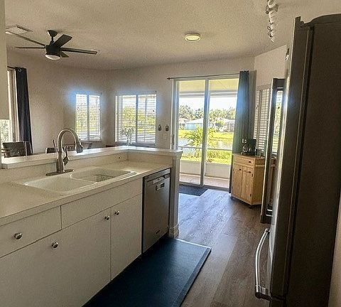- Exterior features: Architecture Style: One Story, Attached, Barbecue, Cable included in rent, Clubhouse, Community, Driveway, Electricity included in rent, Fitness Center, Garage, Gated, Grounds Care included in rent, Heating system: Central, Heating: Electric, Lake, Lanai, Outdoor Grill, Paved, Pickleball, Pool, Porch, Screened, Screened Porch, Sewage included in rent, Short Term Lease, Shuffleboard Court, Smoke Detector(s), Split Bedrooms, Tennis Court(s), View Type: Lake, Water included in rent