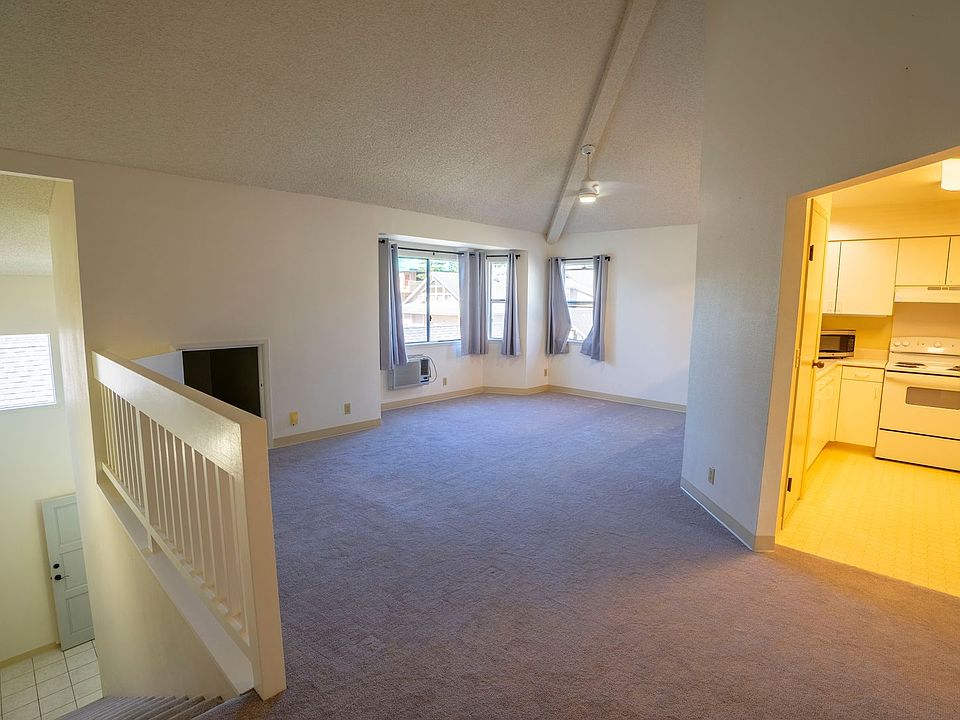 Over 1000 sqft upstairs unit with 2 bedrooms and 1 full bathroom. Breezy unit aided with ceiling fans and window air conditioning units (living room and main bedroom). Added bonus is a walk in storage area off the living room! A full size washer and dryer is in unit for added convenience. 2 parking stalls are assigned to this unit. Conveniently located near the freeway, on and off ramps. Across the street from Longs Drugs, McDonalds, Starbucks, a gas station and more. Water, sewer, and trash are included with the monthly rent. 1 year lease, sorry, no pets. $25 application fee per adult, renters insurance is required. Property Insights Inc (RB-23988)