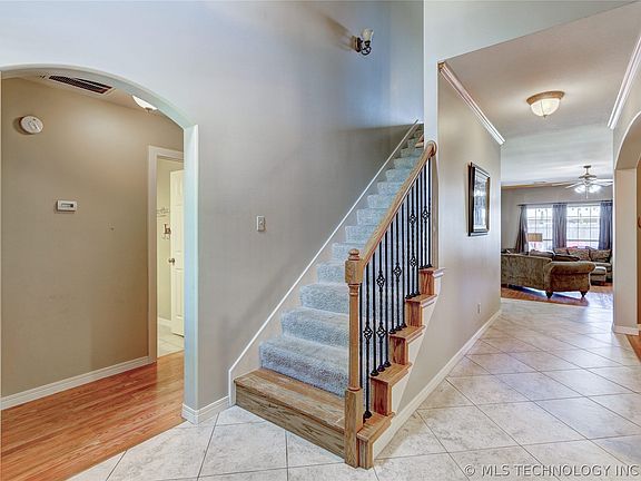 Beautiful full brick home nestled in Bixby's Twin Creeks! Awesome outdoor living area with granite kitchen, pergola and fire pit. Desirable floor plan boasts dining, living open to kitchen, master suite and two beds down; large game room + fourth bed up.
