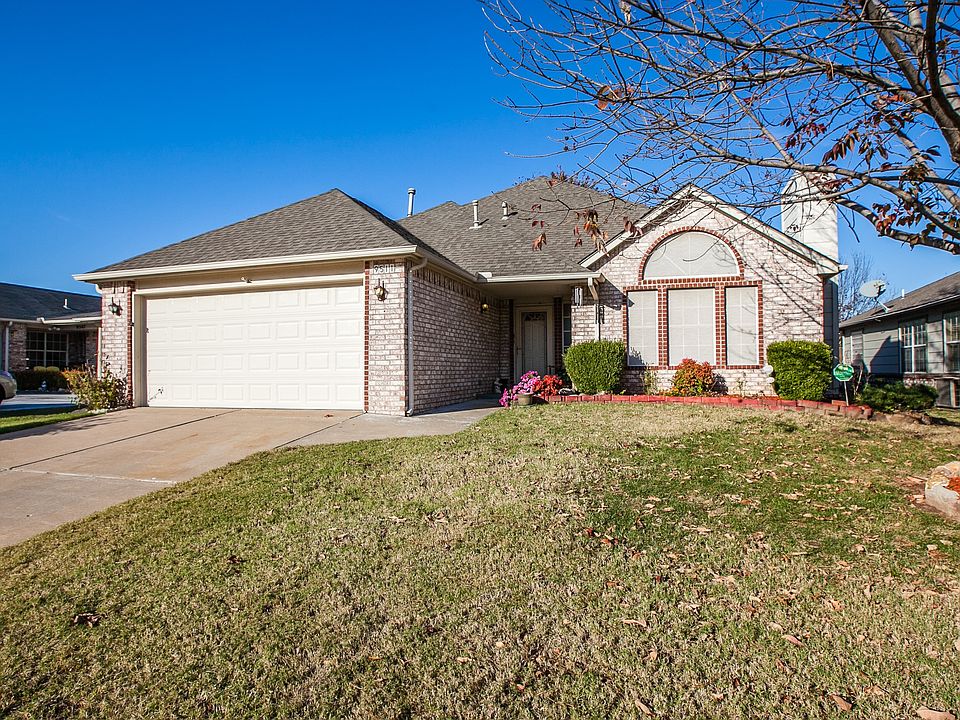 Located in the beautiful Woodlands neighborhood, this charming one-story home is a perfect blend of comfort and convenience. The open floor plan boasts large windows that flood the interior with sunlight. At the center of the home is a spacious center island kitchen with ample storage and a large dining area. The kitchen opens to a large family room with a wall of windows overlooking the backyard and mansard ceiling providing the perfect spot for movie night or just curling up with a good book. The front living room features a cozy fireplace and vaulted ceiling. This space is ideal for a 2nd living, formal dining, or study. The primary suite is spacious with mansard ceiling and private bath with two walk-in closets and double vanity. The private backyard provides a serene setting with covered patio, shade tree, newer privacy fence and storage shed (not warranted). 2023-05-10