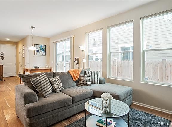 Stop looking! This is it! Fantastic location & Mrs Clean lives here. Minutes to downtown Denver, Denver Tech Center, Parker, airport. Gorgeous end-unit, paired home, that feels like a single family, not a town house. Immaculate condition, with plank flooring, functional open floor plan, tons of sun coming in through HUGE windows in every room, including bathrooms. Corian counter tops with under-mount sink. High ceilings. Neutral colors through-out. Tons of storage, 3 linen closets. 770 SF unfinished basement with rough-in for additional bath and legal egress windows. Better than new, includes Hunter Douglas duet blinds on EVERY window and upgraded master bath shower.