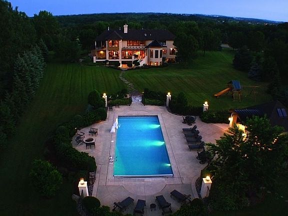 Your own Country Club! Thoughtfully situated on 2.5 acres complete with orchard trees, cabana, pool, hot tub. Theater room, main floor office, gourmet kitchen, two-story family room. 4 beds up. Completely finished walk out LL. 4 stall garage. High end finishes.
