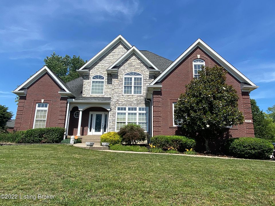The great curb appeal of this home will have you wanting to see more. This home has 2700 sq. ft.of living space. As you enter the light filled foyer you'll enjoy the openness of the formal dining room with coffered ceiling and the 2-story great room with gas fireplace. The first floor has hardwood flooring in the foyer, dining room, great room, kitchen and half bath. There is a remote for the blinds in the dining room and the foyer. The kitchen is outstanding with an island and a second fireplace. There is plenty of room for entertaining family and friends. Beautiful cabinetry with a 5 burner gas cooktop and a built in ''Monogram'' refrigerator . There's a large laundry room with sink just off the kitchen. Finishing off the main level is a spacious primary bedroom and bath. The primary bath has a double sink vanity, jetted tub, separate shower and private water closet. There's also a large walk-in closet. The half bath is also on this level. Upstairs is a bridge balcony with 3 bedrooms, all with walk-in closets and another full bathroom and extra closet space. There is a full unfinished basement that is roughed in for a full bathroom as well. The nice size garage has a 18' x 8' door.