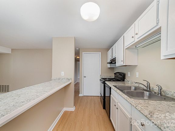 Explore this updated two-bedroom, two-bath 3rd floor condo. Conveniently located within walking distance of UNCC and close to shopping, dining, and public transportation. The open floor plan connects the kitchen and living area, featuring a pass through breakfast bar. The unit has been freshly painted, has new flooring, and new bedroom windows. The kitchen has white cabinets, coordinating countertops, and comes with appliances, including washer and dryer. The primary bedroom has a walk-in closet, and both FULL bathrooms have been recently renovated. This home is ready for you to move in and enjoy.