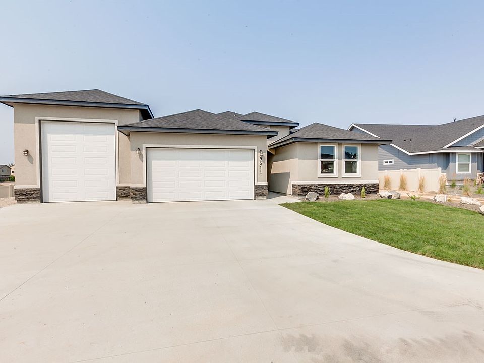 So much to love in this home including a large granite kitchen with island opening up to the living and dining room with hardwoods throughout and plenty of windows for natural light. Master Suite includes a soaker tub, tile walk in shower, dual vanities and a large walk in closet connected to the laundry room w/ a sink and folding table. HUGE 4 car w/RV bay to store anything & everything with low maintenance full landscaping and a back covered patio. Community Pool.