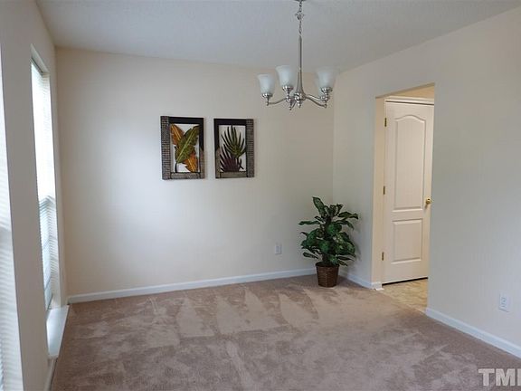 Spacious 4 bedroom plus an office in the Leesville area. Two story foyer, separate dining room. Kitchen with granite counter opening to breakfast and family room. Office/Study room on the first floor. Vaulted ceiling in the large master bedroom. Master bath with double vanities, separate shower/tub and large walk in closet. New roof, wooded private back yard, close to shopping, Easy access to RTP and I-540.