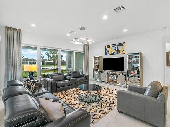 Gorgeous Bimini model features 3 bedrooms + den, 3 baths and extended patio overlooking a beautiful lakeview. Upgrade highlights include impact windows and doors with an etched glass entry door and side light, tons of kitchen and bath upgrades, high end lighting fixtures including Swarovski crystal chandelier, custom feature mirror wall, motorized window treatments & plantation shutters, several high hats, custom closet systems, gutters, upgraded landscaping and so much more.