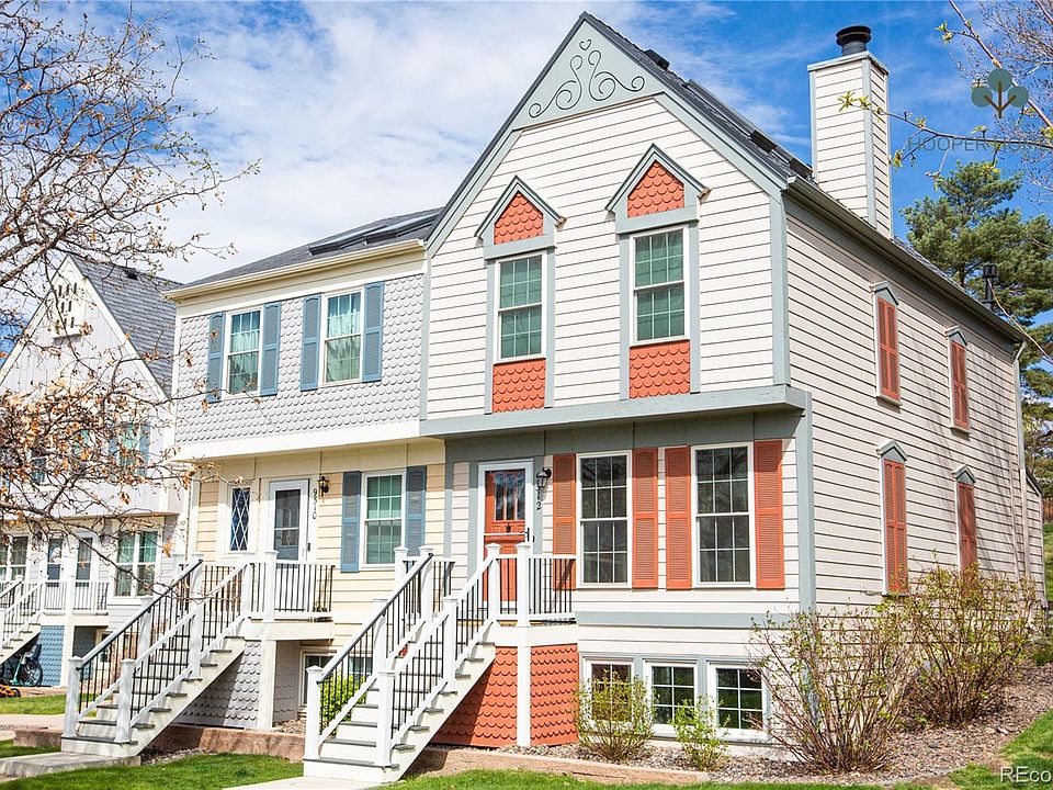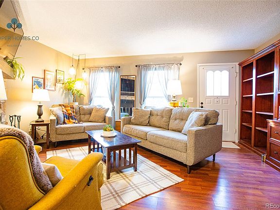 Welcome home! Step into a cozy main-level family room with beautiful custom fit “built-in” Ballard Designs bookcase with a wood-burning fireplace, 1/2 bath, dining area with Ballard Designs custom benches, updated lighting, large pantry, and rare covered back patio (patio furniture included) that opens up to an expansive grass area with attached shed. Inside upstairs, find a light-filled spacious primary bedroom with vaulted ceilings, new skylights (October 2024), large closet, and full bath ensuite. Across the hall past the linen closet you will find a second bedroom with large closet boasting view of grass area and a private full bath ensuite. In the basement you will find a bright garden level living space/non-conforming bedroom, office/non-conforming bedroom with access to enclosed laundry area (washer & dryer included) and a shared full bath. Note as of Autumn of 2024 the brand new recycled tires hail-resistant roof, HVAC system and ducts cleaned, and fireplace serviced and cleaned (and not used since). All windows are double-paned and Family room and two upper bedrooms have light filtering accordion cellular shades. Don’t forget to enjoy the community pool and quick access to beautiful paved path, Dutch Creek Trail. Easy access to C-470, shopping, dining, Chatfield Reservoir, and world-renowned Red Rocks Amphitheater!