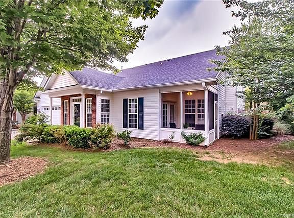 Fabulous updated, low maintenance 1-story end unit in popular Southbrook Villas nestled among mature trees. Spacious family room w/ fireplace & vaulted ceilings opens to dining area & kitchen. Kitchen boasts an abundance of white cabinets, quartz counters, SS Appliances & tile back splash. Large Master Bedroom with lovely tray ceiling, sitting area and master bath with dual vanities, HUGE walk-in closet. The 2nd bedroom space could serve as an office, guest room or sitting room. Enjoy a cup of coffee and a good book or glass of wine with a friend on the screened porch. Freshly painted, New roof 2019, recently updated water heater and HVAC. Minutes to I-485, Stonecrest, Blakeney, Waverly, Rea Farms, medical offices and all of the shopping, dining and entertainment you can handle. This lovely home won't last long!