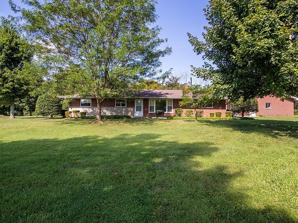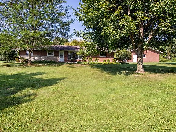 Great country setting and curb appeal on 1.4 acres! Includes a nice, well maintained 1,550 square foot brick ranch with 3 beds, 1 bath, new roof, new carpet, and gas heat. Also includes city sewer and water and a detached 2 car, 36x28 brick garage, also with a new roof and concrete flooring.