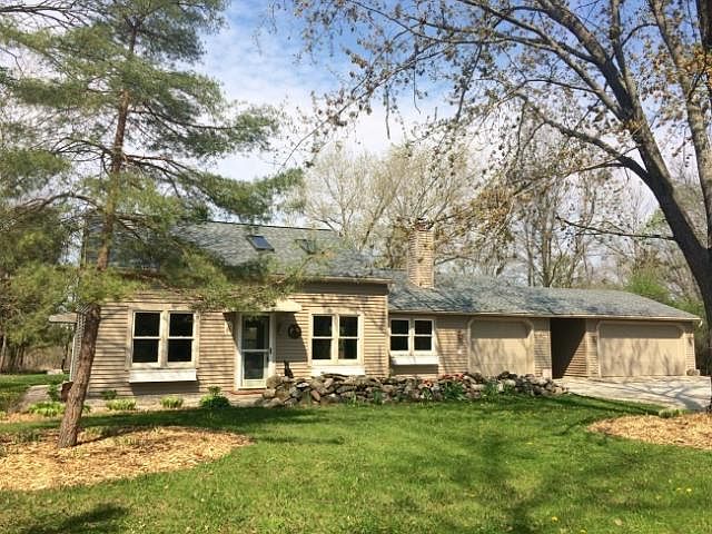 Truly one of a kind! This beautifully remodeled 3 bedroom Cape is quietly nestled on 1.83 private acres. Bright and modern eat-in kitchen boasts an abundance of shaker-style hickory cabinetry, Corian counters, heated tile flooring and all appliances! Soaring ceilings accented by skylights and natural hardwood flooring in the spacious living room. Relax and unwind in the family room with floor-to-ceiling stone fireplace, hardwood flooring and patio doors to rear deck. Renovated full bath offers walk-in Swanstone shower stall, pedestal sink and new fixtures. Two main floor bedrooms - one currently used as a wonderful home office. Amazing loft-style master bedroom upstairs with dressing area, walk-in closet and newer windows. Spectacular outdoor setting includes 3.5 car garage, hot tub and pergola. Newer vinyl siding, roof, electrical, furnace, water heater, and reverse osmosis system.