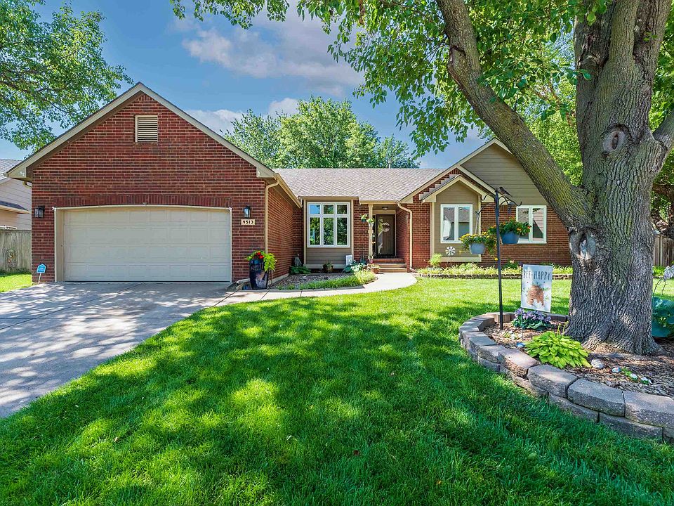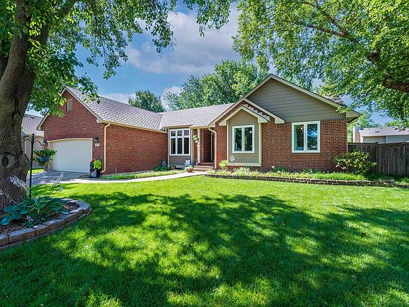 This wonderful northwest Wichita home sits on a large lot nestled in a quiet cul-de-sac. Walking up you will notice lots and lots of lavish landscaping and mature trees. Step inside and find a large living room with a nice fireplace, great character with the archways, formal dining, and main floor laundry. This home has a great kitchen with plenty of counter and cabinet space, as well as a pantry, eating bar, and another dining area. Down the hall there are three main floor bedrooms and two full bathrooms. Head downstairs to the enormous family room with another cozy fireplace. A nice sized bedroom as well as another bonus room that would be great for an office or exercise room. A full bathroom, wet bar, and the largest storage room you could ever imagine! Enjoy the spectacular outdoor space in the expansive backyard with a covered deck and a large patio area. This fenced yard is easy to maintain with a sprinkler system on a well. Home sits on a third of an acre and comes with a storage shed. Playground stays with home. Shelving in garage goes with seller as well as 2 of the storage room shelves. The neighborhood has excellent amenities with a swimming pool, jogging paths, play ground and a lake!