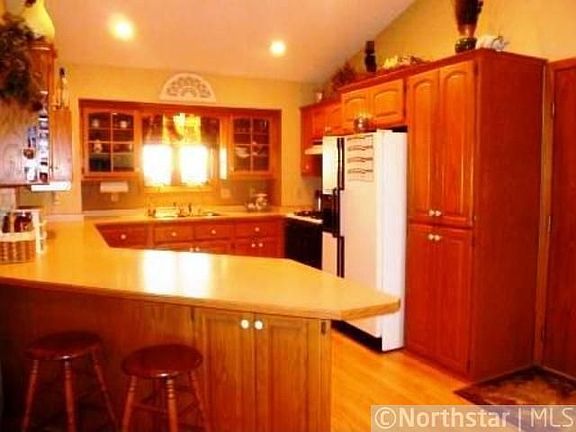 Beautiful rambler 2 miles from town, heated pole shed with electricty/water; private full master bath with jacuzzi tub and walk-in closeet, deck, open floor, vaulted ceiling, 4th bed WI closet, mint condition!
