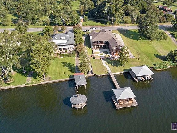 Invest in the highest level of luxury on False River! This 4 bedroom/4 bath home is filled with all the added and attractive features in a prime location. In addition to the amenities of the residence, the boat house includes 2 boat slips with electric lifts, separate pier and private boat launch equipped with water and electricity. All deck boards are wax infused. The seawall is built with 2 retainer walls consisting of creosote and vinyl. Enjoy sitting on one of the two balconies with breath taking views of the river, one off the master bedroom and the other off the kitchen/living area. All balcony railings are powdered coated aluminum and porch floors are antique pine. Whether entertaining or enjoying an intimate meal, you will greatly enjoy utilizing one of the three kitchens with stainless steel appliances and granite countertops. The main floor of the house has dirty top floors and 12x12 beams on the ceiling. All exterior doors of the home are custom cypress. The downstairs has brick floors throughout with 12x16 beams on the ceiling and a gas brick fireplace. The downstairs bath and laundry room have unique soap stone countertops. Antique rafter tails are a decorative part of the exterior eves. The back yard is landscaped with travertine stone walkways, French drains and a kettle fountain as the centerpiece. Park in the circle drive of the main floor or drive down to the river and park in the 2- car garage. The bottom floor features an air-conditioned storage room. Always a bonus to any home, this one has an in-house vacuum system throughout.