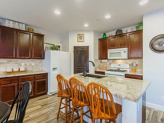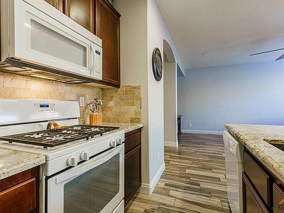 Welcome home to this beautifully remodeled 3 bedroom 2 bath spilt wing home. Plenty of upgrades that you are sure to love! Ceramic wood like tile that flows throughout! The kitchen has been upgraded with beautiful granite countertops and natural stone tile backsplash, with an upgraded sink and faucet. Both bathrooms have been redone as well with the same granite and tile backsplash. 5 inch baseboards, recessed lighting, and brushed bronze door knobs are just some of the details this home has to offer. Floor plan also includes a formal dining room, and indoor laundry. Backyard has a gorgeous patio covered perfect for summer nights. Finished 2 car garage with built in cabinet as well. All this in The City of the Hills with No HOA fees!